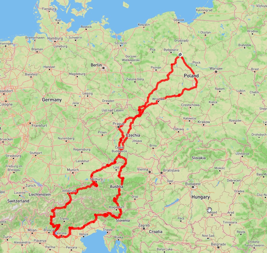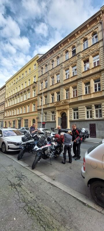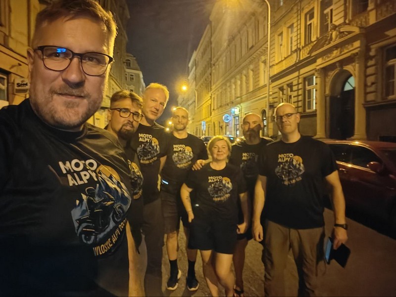 Ponieważ startujemy z różnych części Polski – część ekipy z Trójmiasta, część z Wrocławia, a my z Torunia – zdecydowaliśmy się na wspólny, symboliczny początek podróży. Oficjalne rozpoczęcie wyprawy zaplanowaliśmy na pierwszym noclegu w Pradze. To właśnie tam, po setkach pierwszych kilometrów, zbieramy się w komplecie i od tego momentu ruszamy już razem, w stronę Alp i przygody, która – mamy nadzieję – zostanie z nami na długo.