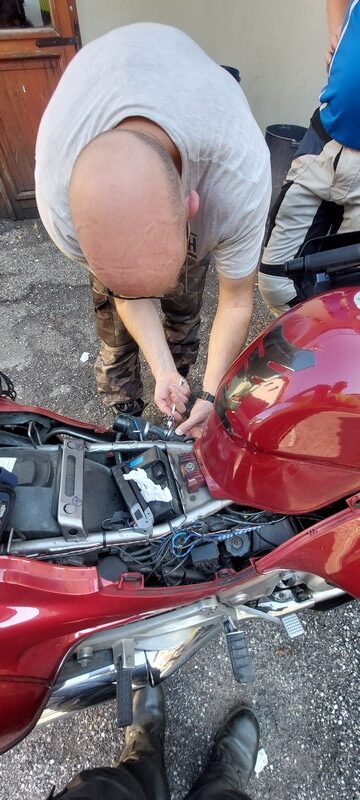 Chłopaki skończyli składać motocykl Grzesia i my też udajemy się na ten punkt. Grześ zamówił sobie taksówkę 😉