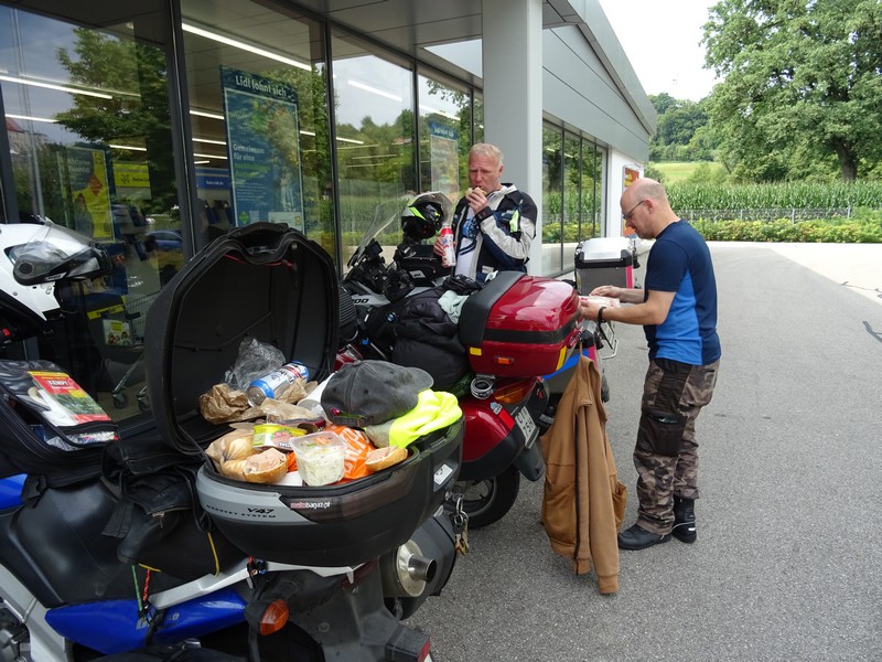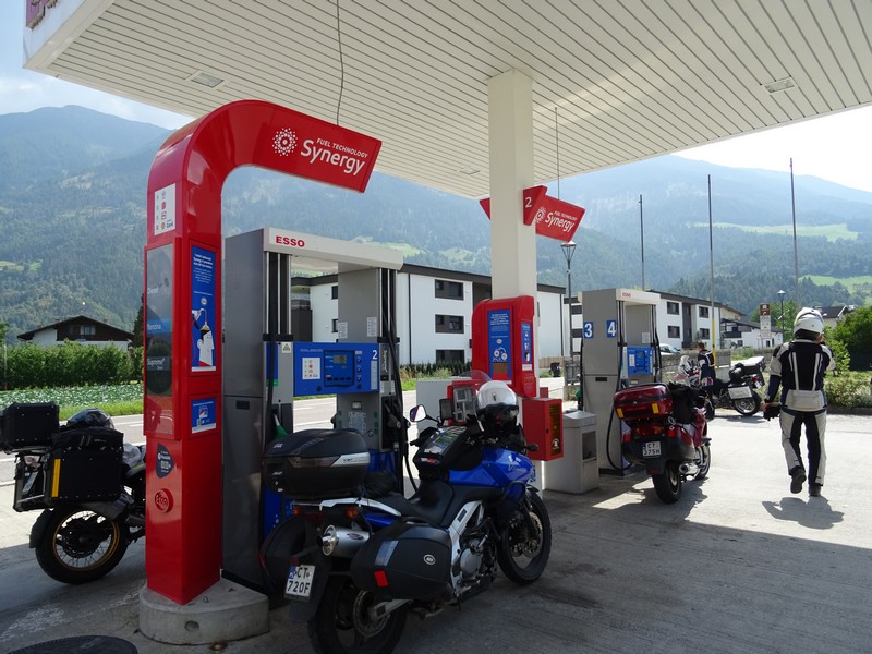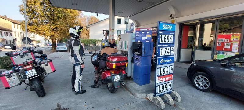 Czasem trzeba zatankować także nas 😉 I tu ciekawostka: niby sklep we Włoszech a wszyscy mówią po niemiecku i nawet wszystkie napisy w sklepie i przy kasie po niemiecku..