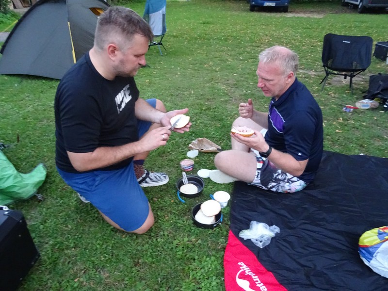I zaczynamy rozbijać obóz – trochę czasu potrzeba na naukę rozstawiania namiotów, ale kolektywna praca przynosi efekty 🙂 Jedynie Marcin ma problem, bo zapomniał stelaża do namiotu i będzie musiał spać „pod chmurką”.